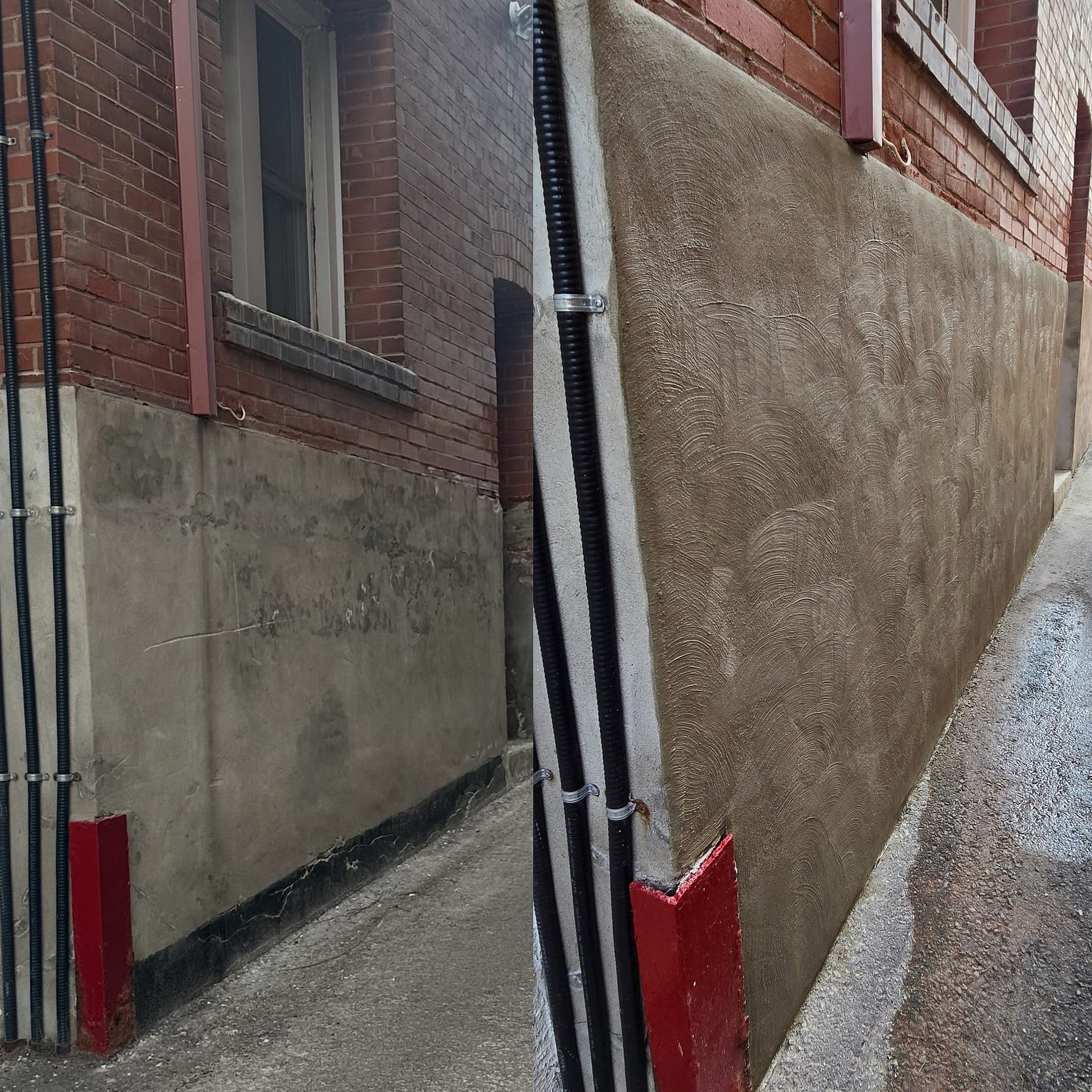 If you walk around the exterior of your home, and you have an existing portion of your wall that has been parged, you can inspect it to see if it needs work. What you look for is cracking, flaking, extensive discolouration. If you tap your parging with something like a key or nail, you can often hear hollow areas, which can indicate a bad mortar bond or an area of deterioration behind the parging.